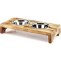 Handmade Real Wood Dog Bar With Two Stainless Steel Cups Wood Dog Stainless Steel Cups Dog Bowls