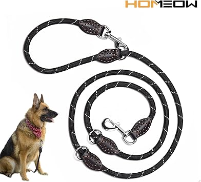 Homeow Premium Hundeleine Doppelleine 2m Grosse Hunde 4 Fach Verstellbar Fuhrleine Laufleine Umhangeleine Handmade Leder Leine Gurt Fur Hunde Schwarz Amazon De Haustier